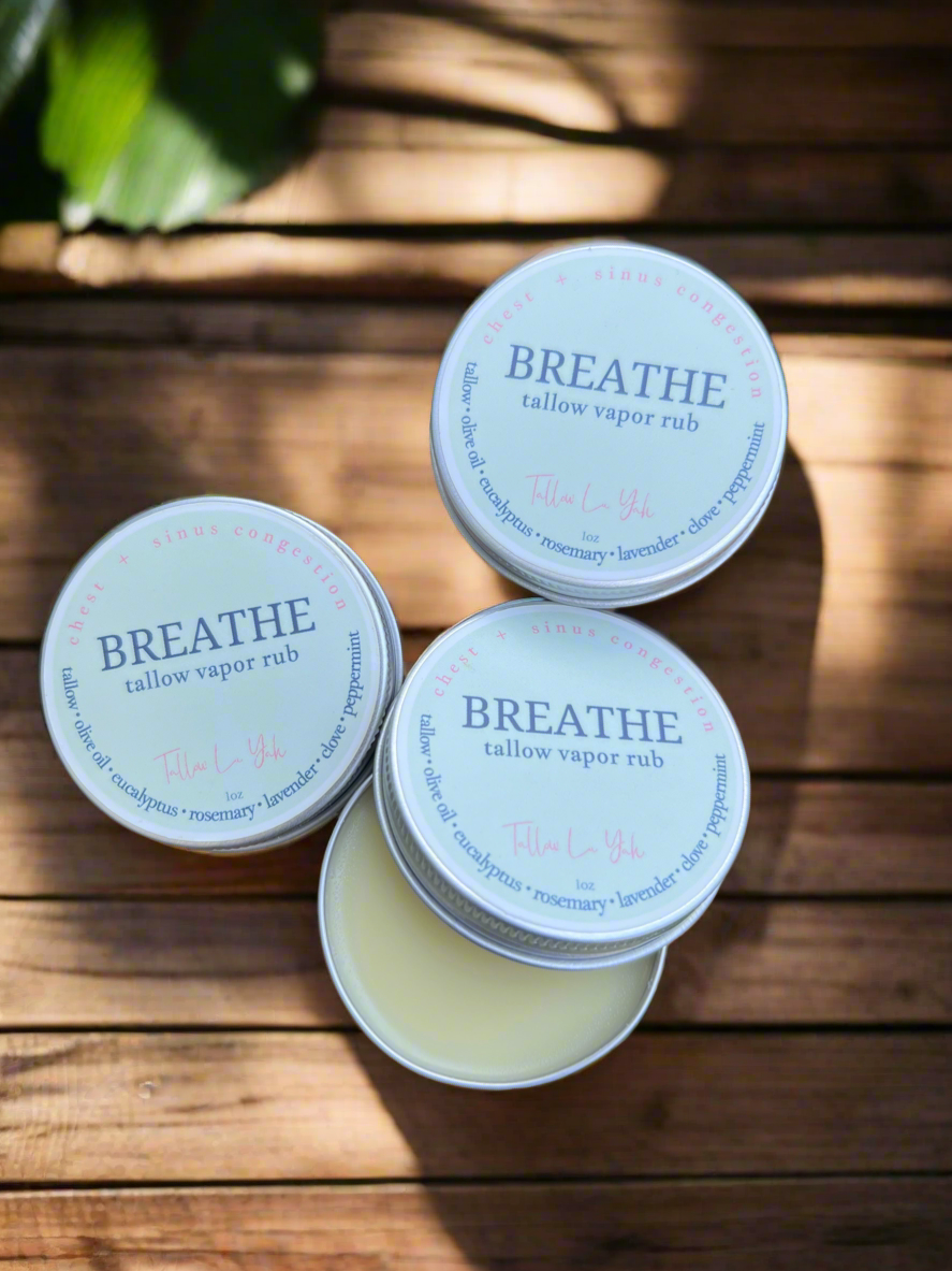 This tallow vapor rub is a powerful blend of therapeutic grade essential oils that include eucalyptus, rosemary, lavender, clove and peppermint. Apply a small amount to chest area and/or back to help relieve sinus congestion and cough.