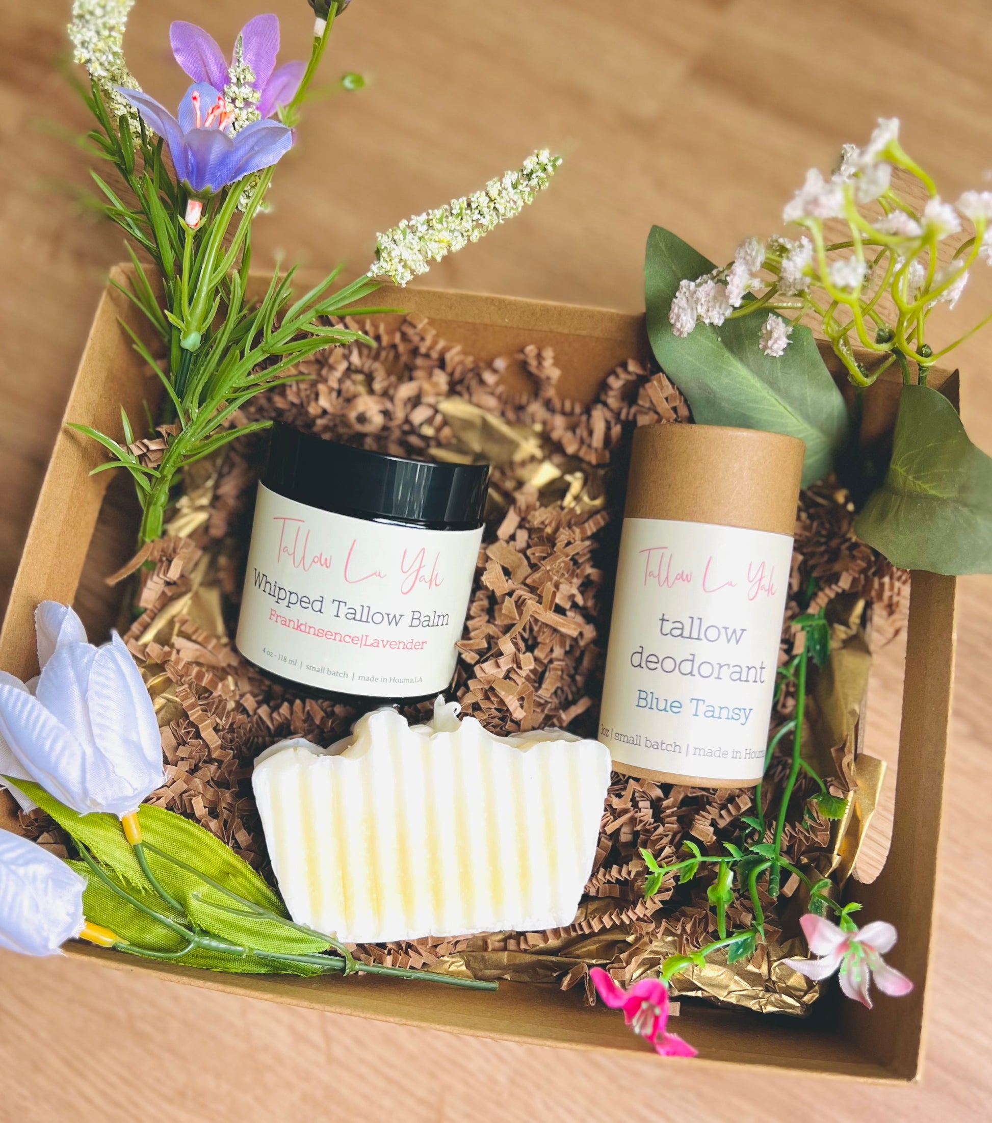 These Gift Boxes are customizable and are so fun! Your loved one will be so pleased receiving a Tallow Lu Yah Gift box with hand picked items from you.
